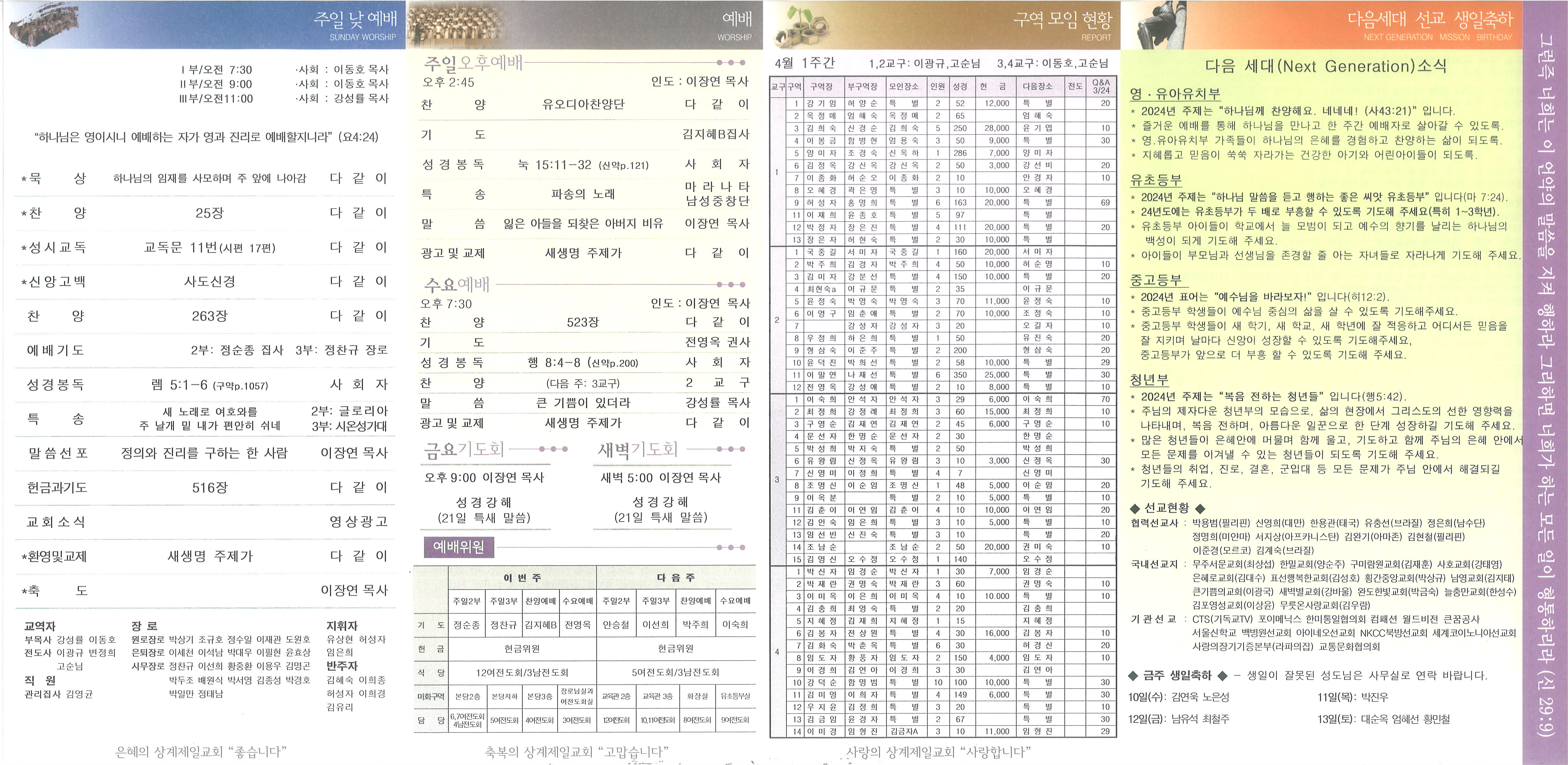 2024년 4월 14일 교회소식 및 Q&A