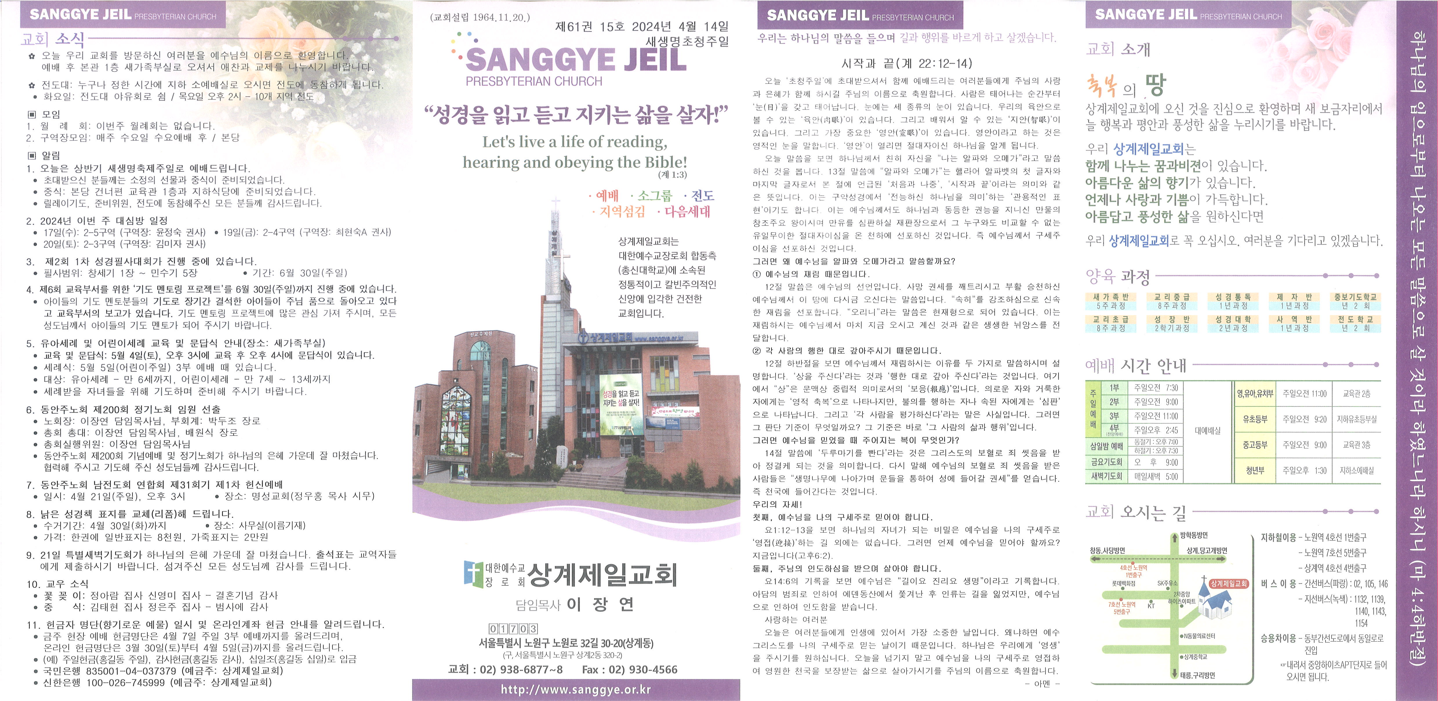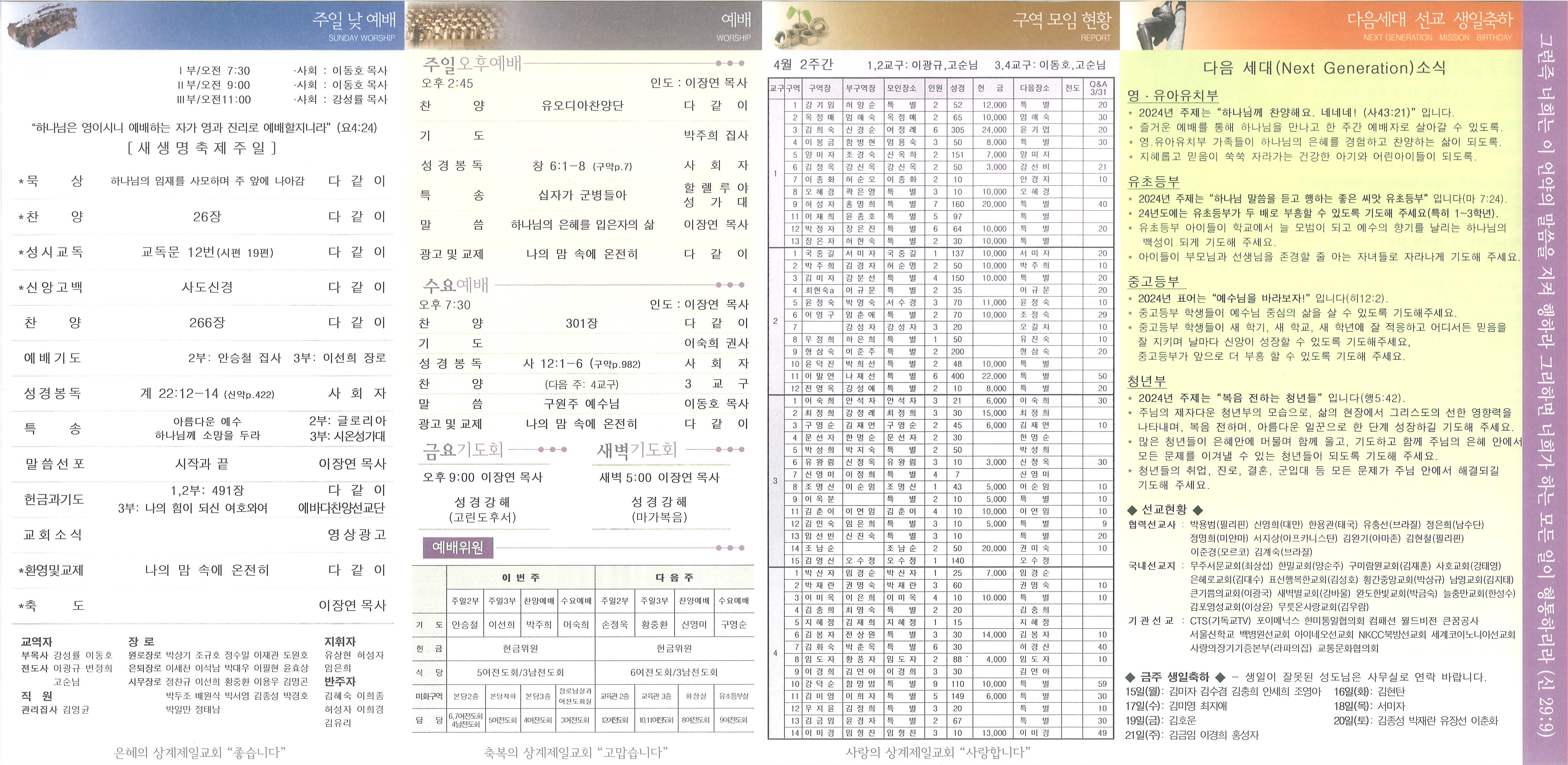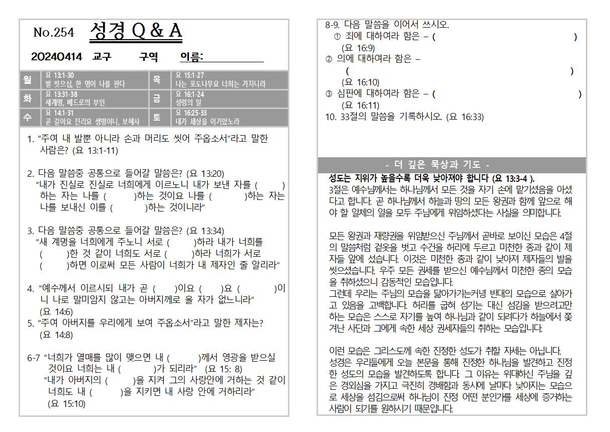 2024년 4월 14일 교회소식 및 Q&A