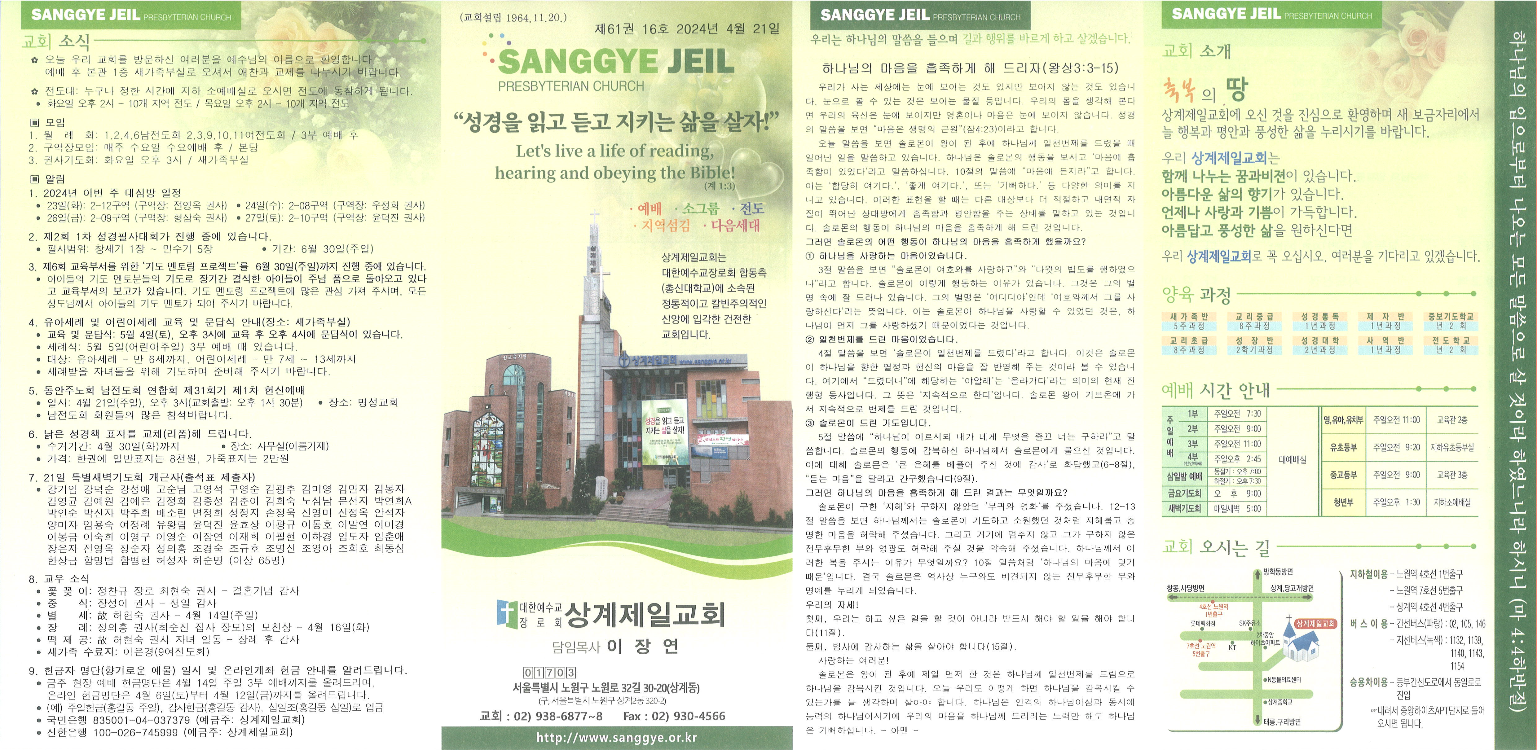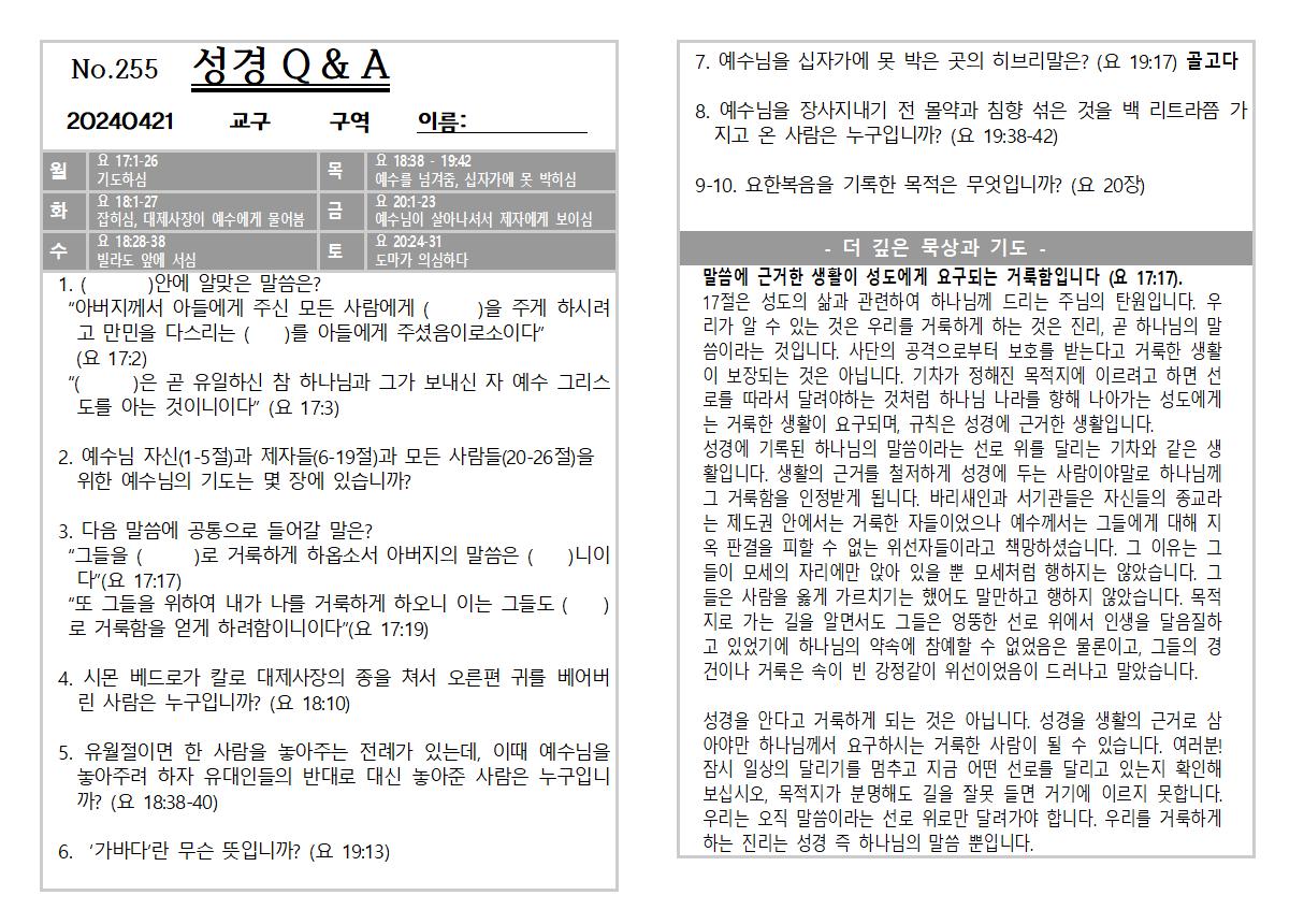 2024년 4월 21일 교회소식 및 Q&A
