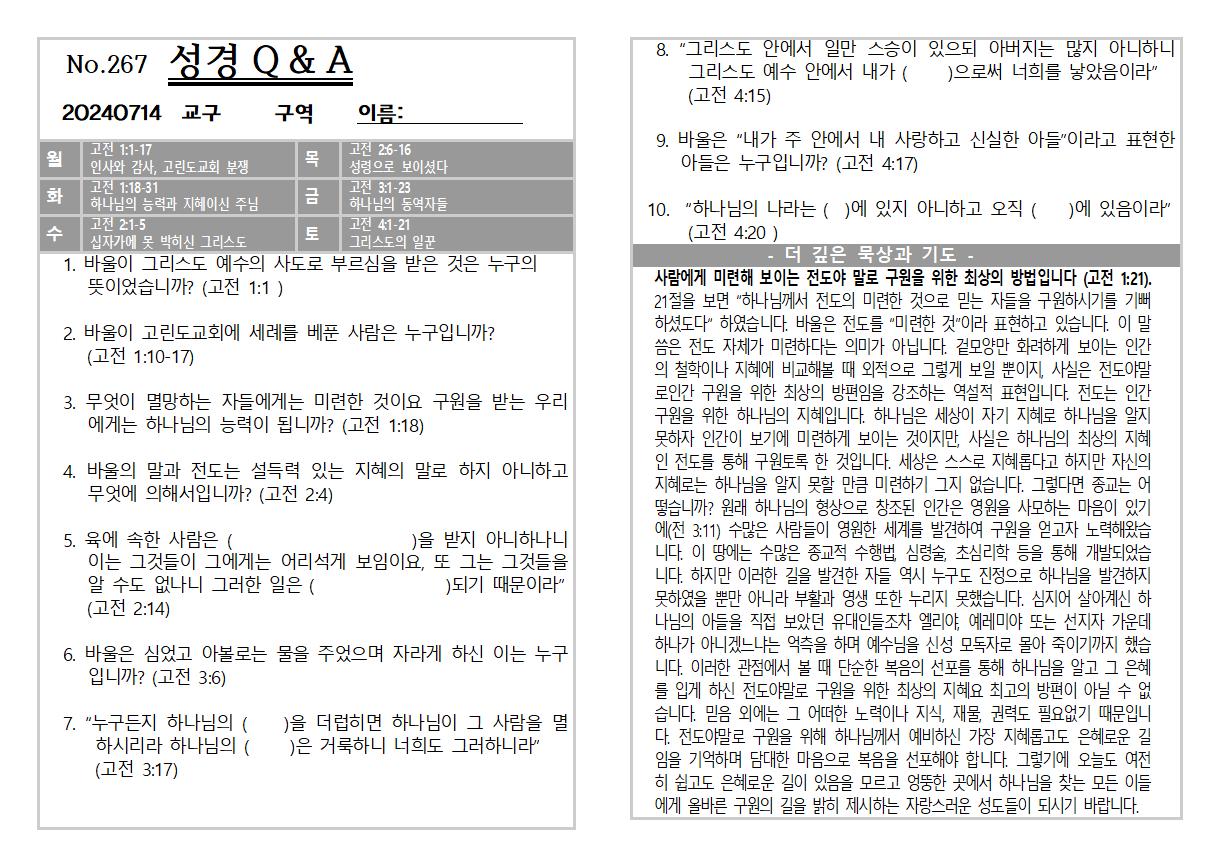 2024년 7월7일 교회소식 및 Q&A