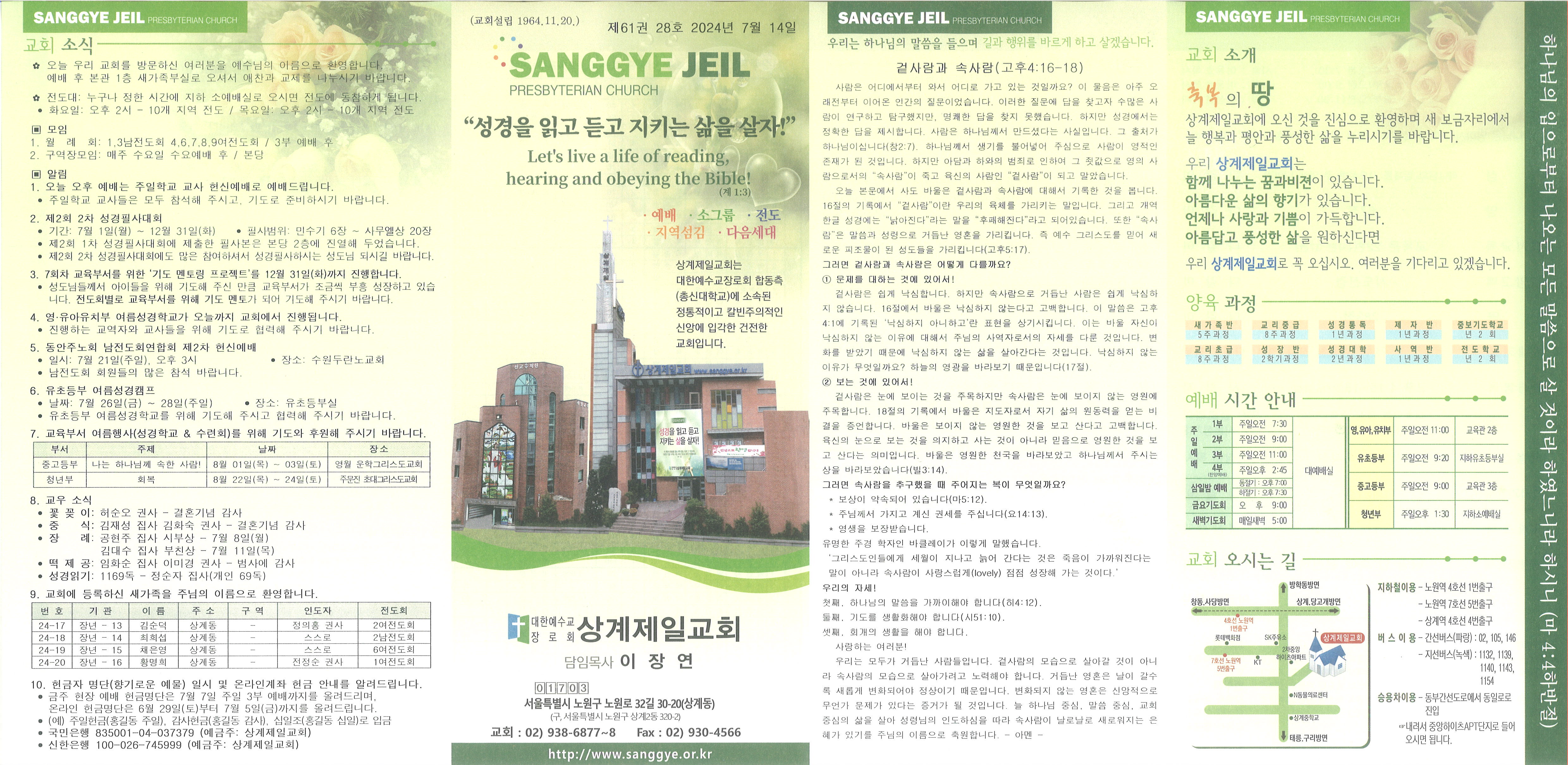 2024년 7월14일 교회소식 및 Q&A