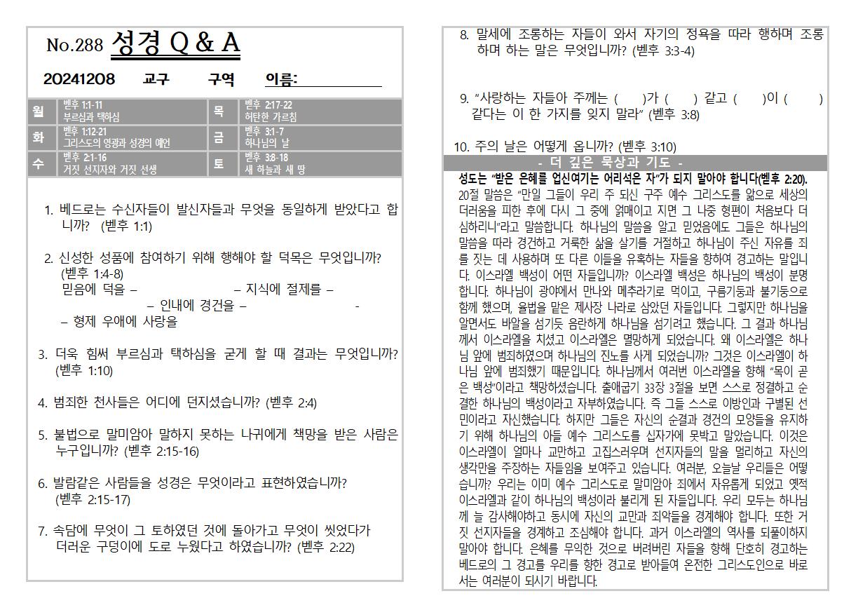 2024년 12월 15일 주일 교회소식 및 Q&A