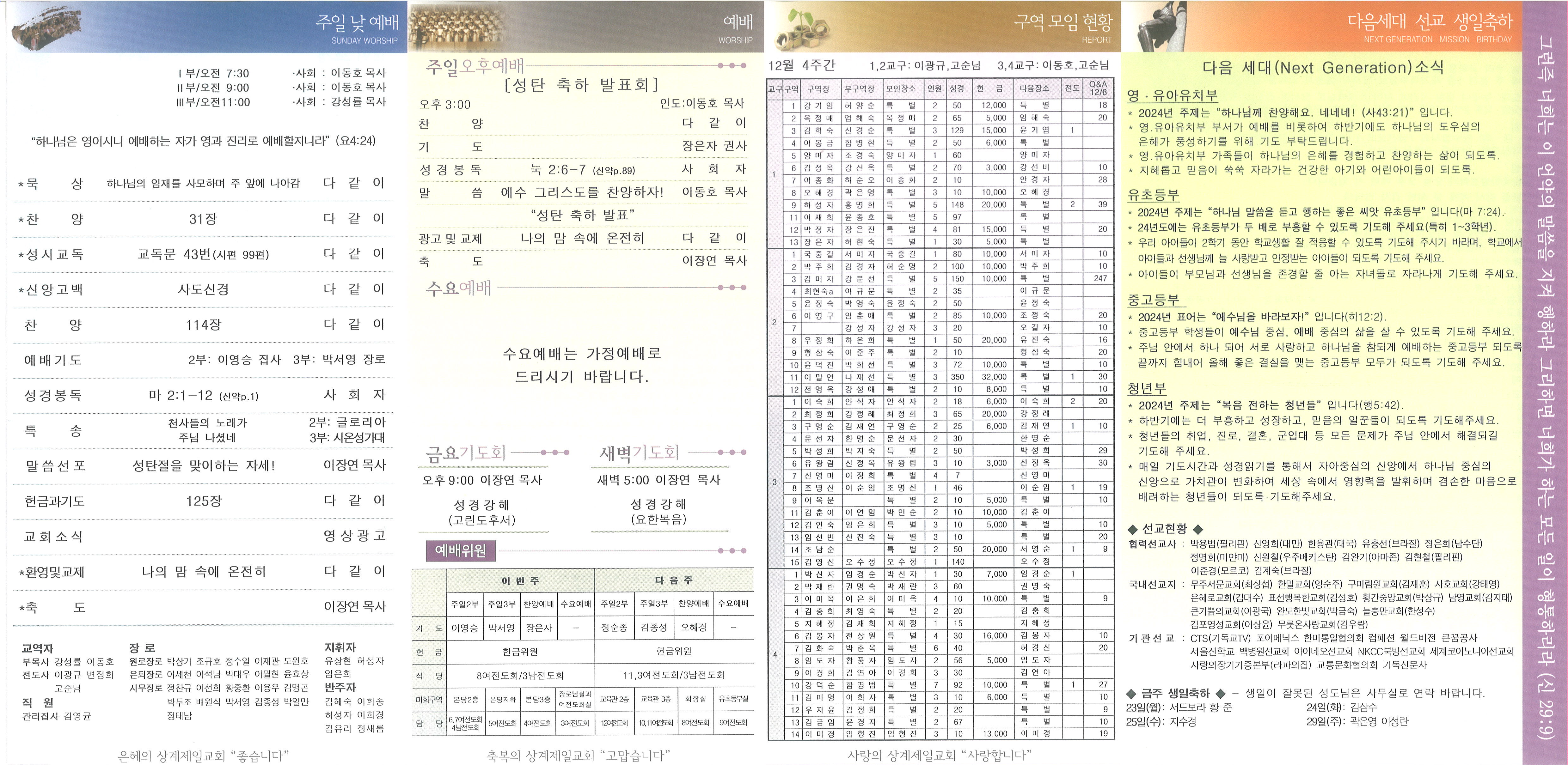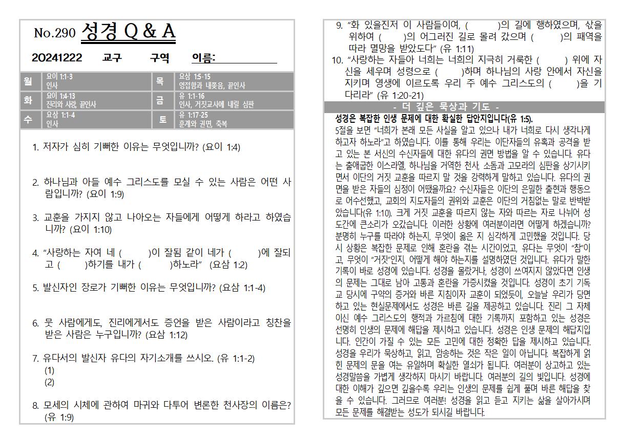 2024년 12월 22일 주일 교회소식 및 Q&A