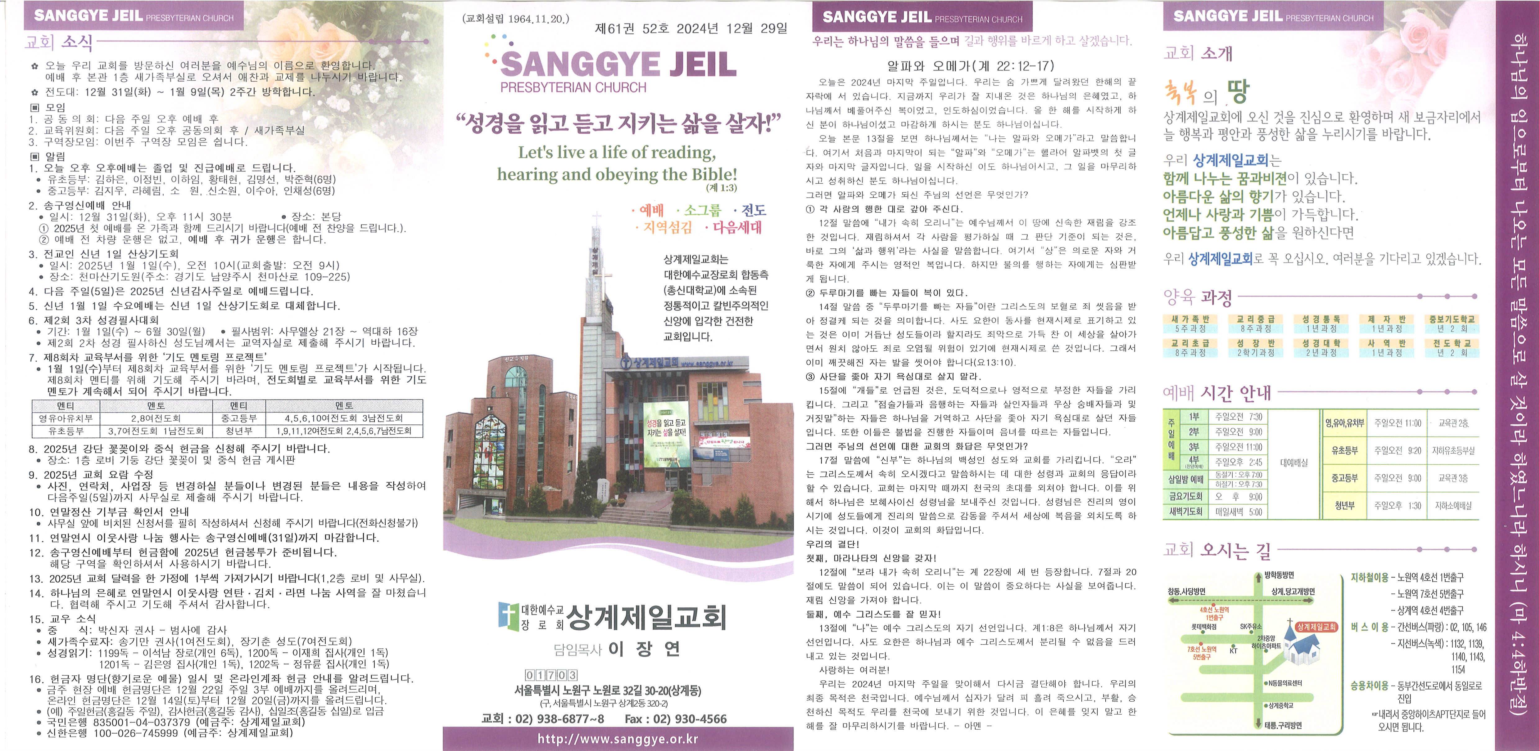 2024년 12월 22일 주일 교회소식 및 Q&A