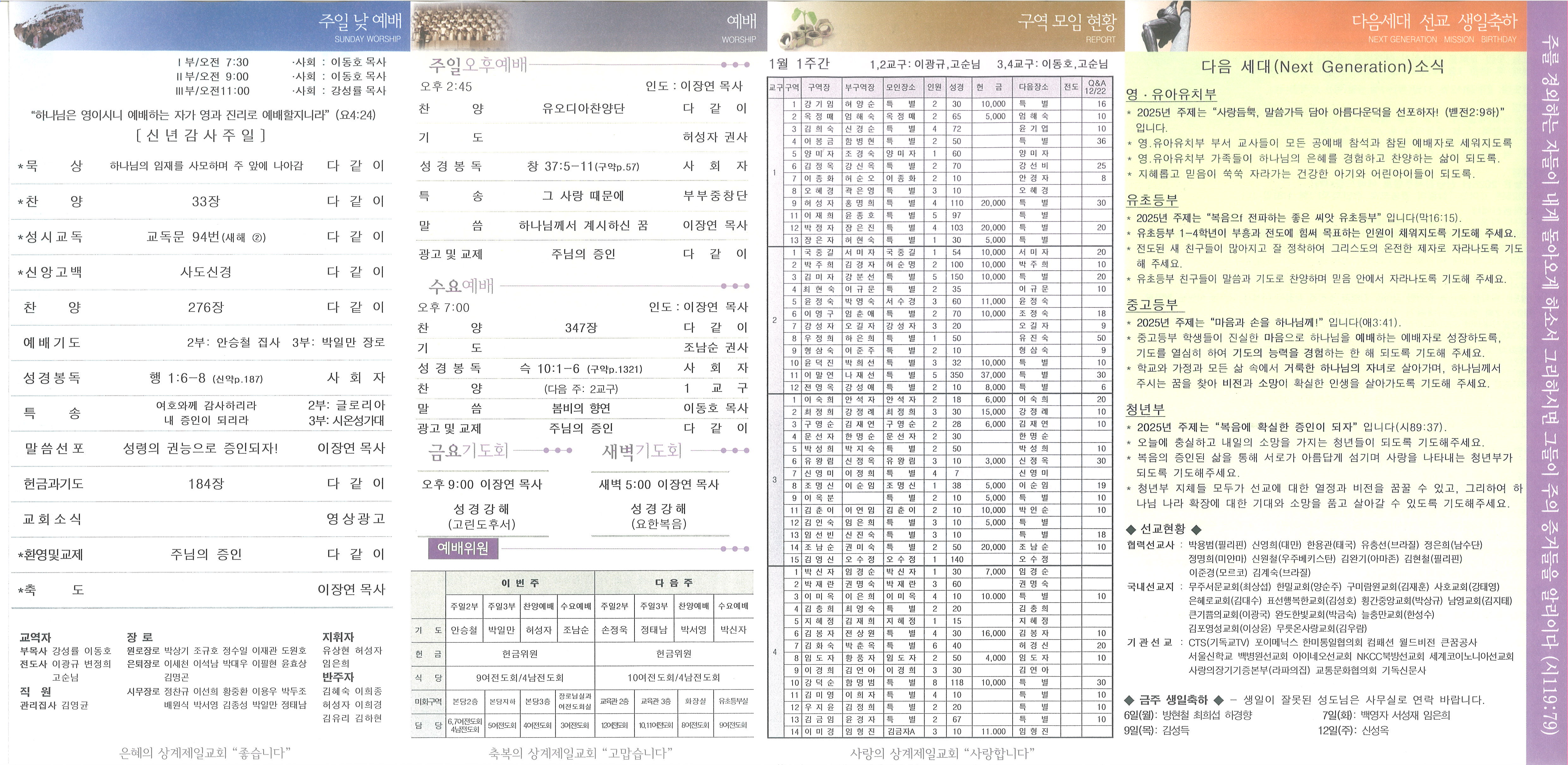 2025년 1월 5일 신년감사주일 교회소식 및 Q&A