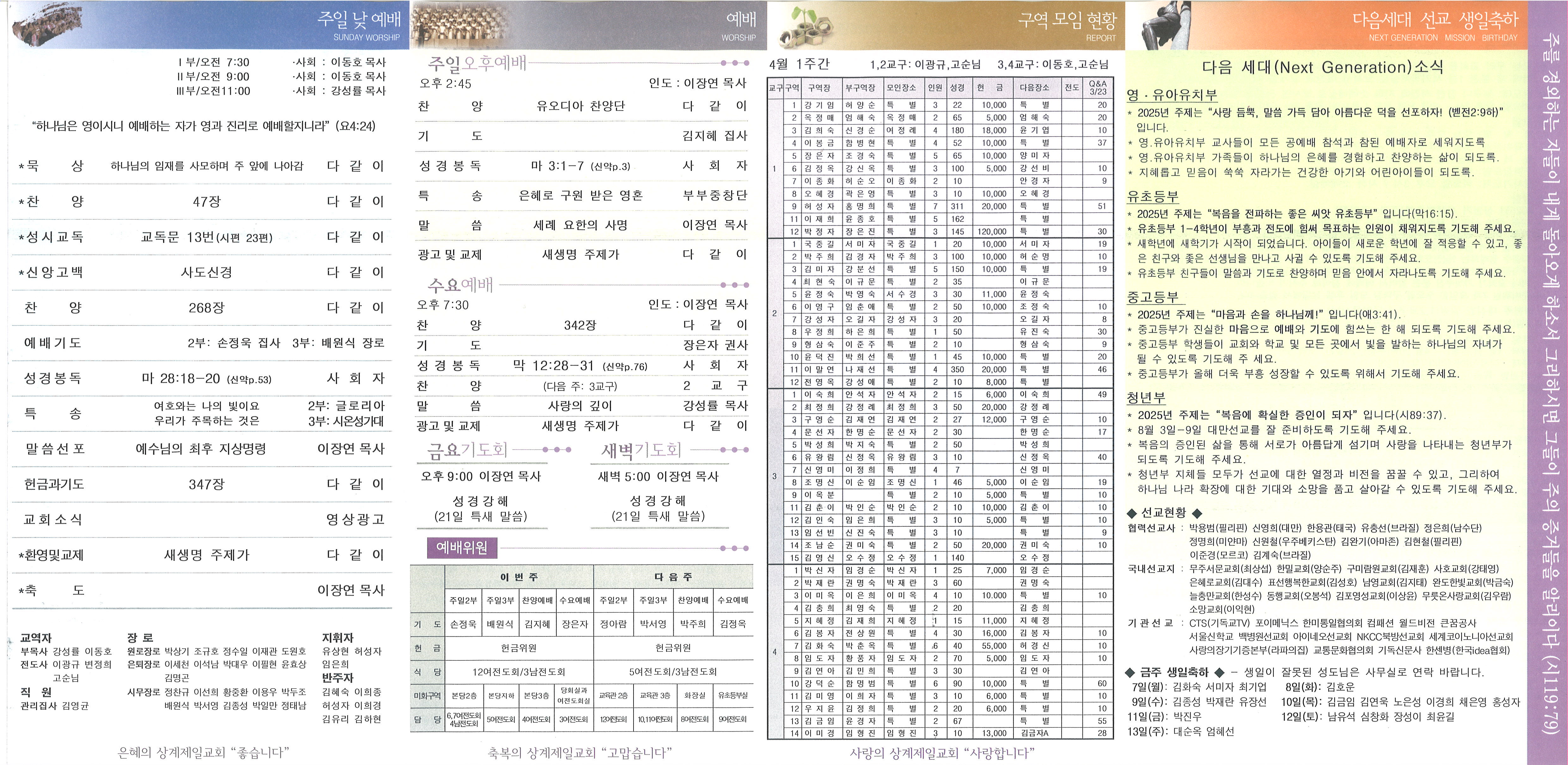 2025년 4월 13일 새생명축제주일 교회소식 및 Q&A