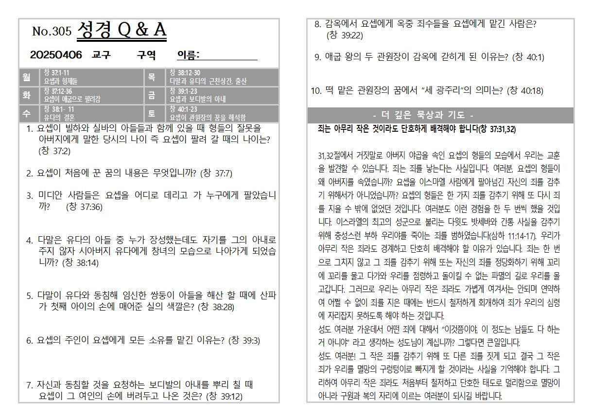 2025년 4월 6일 주일 교회소식 및 Q&A