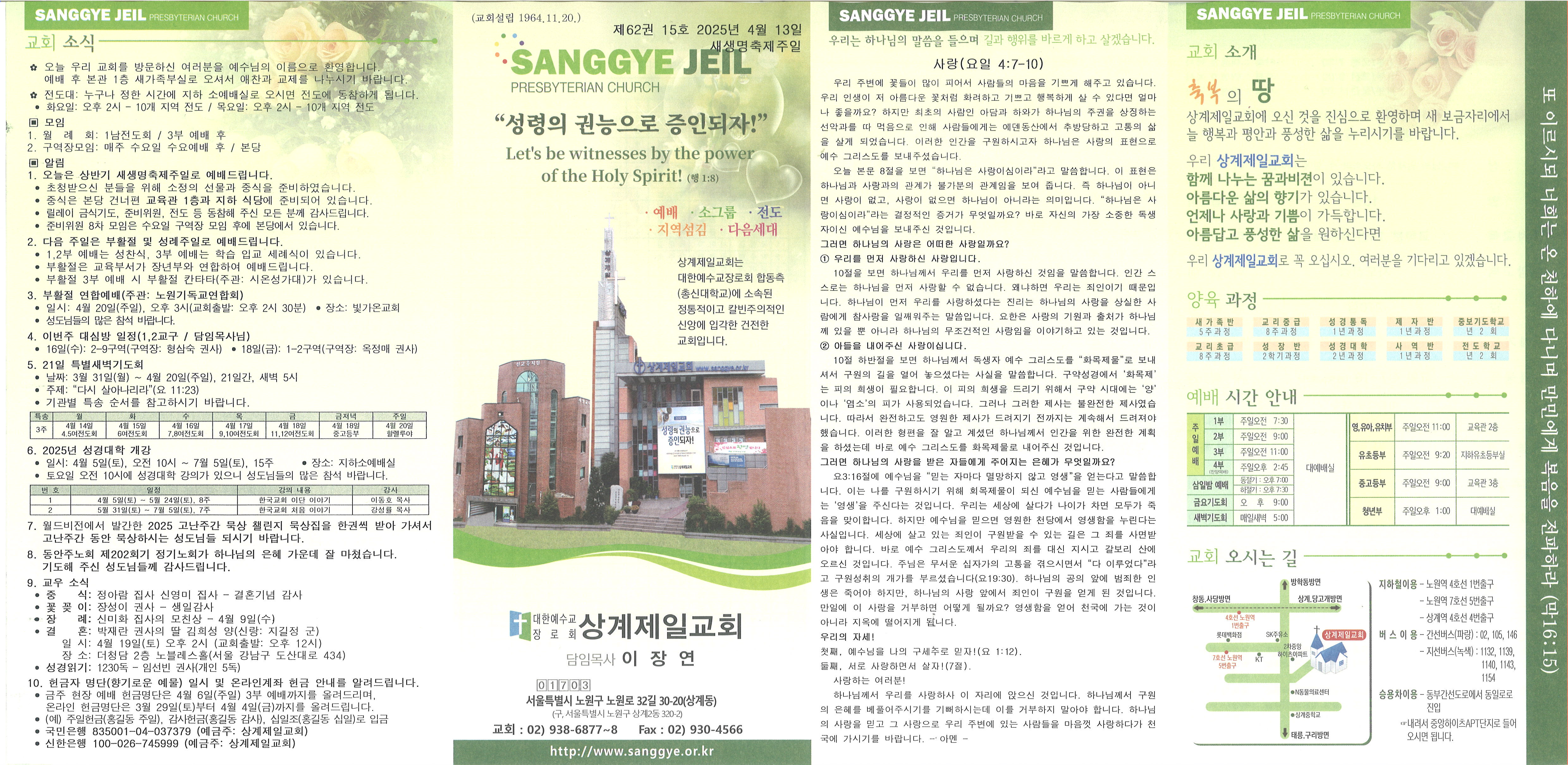 2025년 4월 13일 새생명축제주일 교회소식 및 Q&A