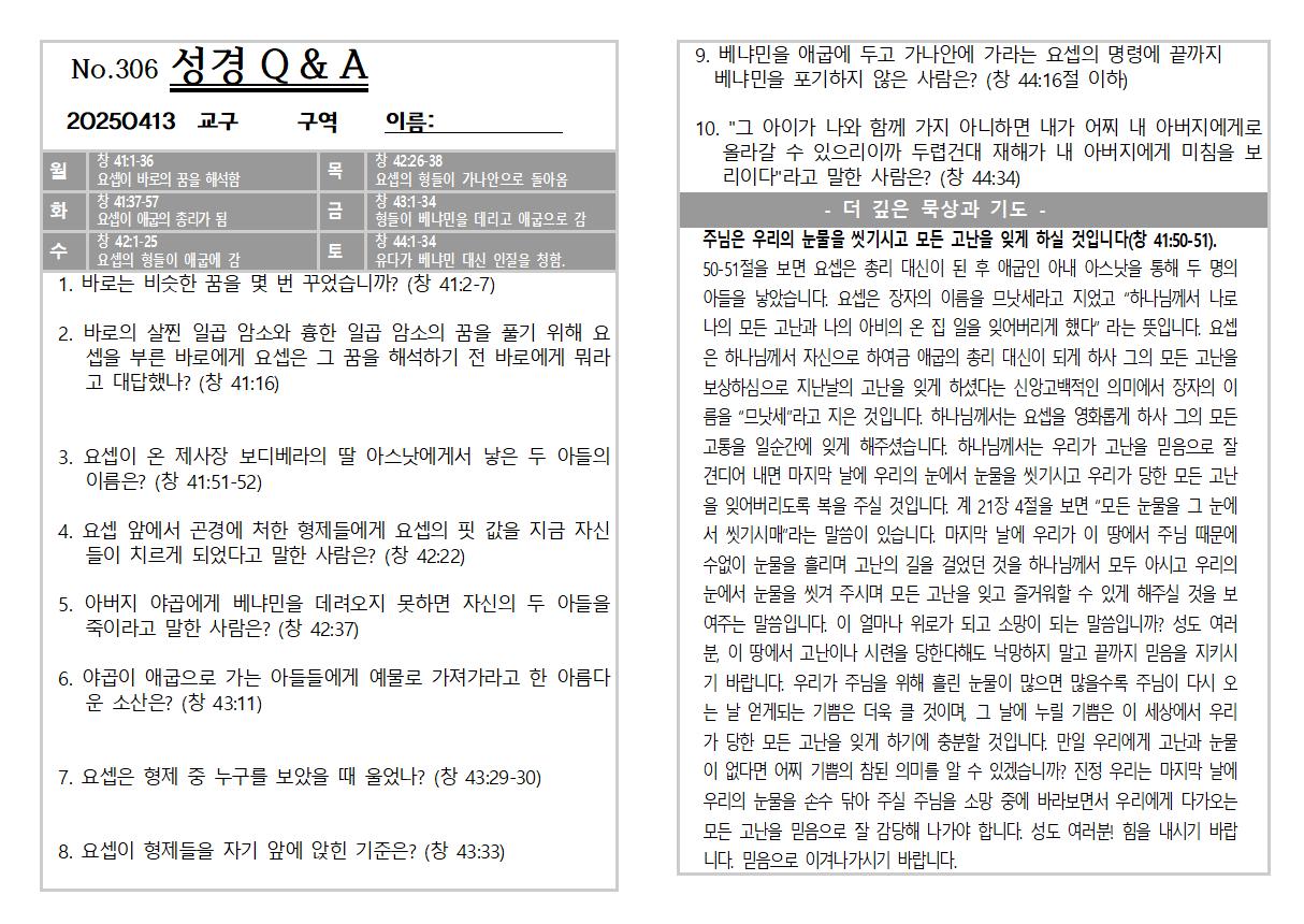 2025년 4월 6일 주일 교회소식 및 Q&A
