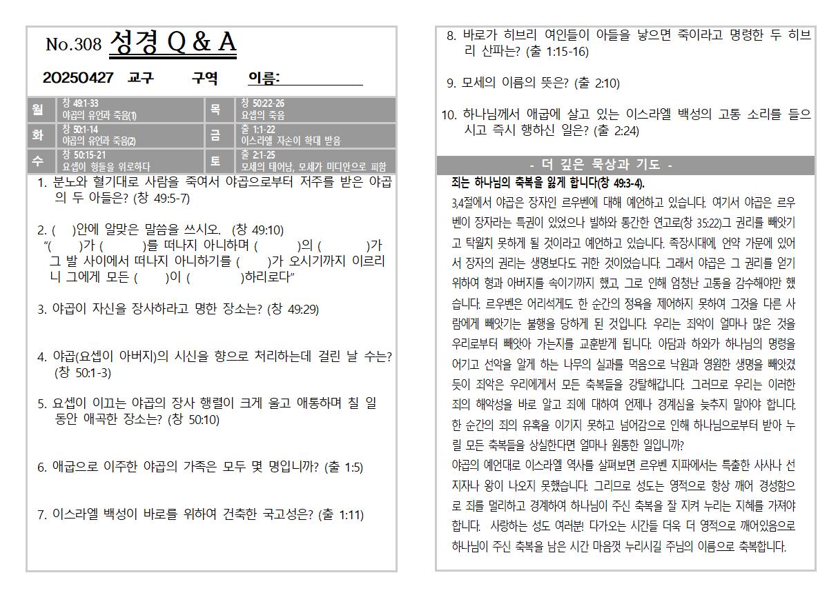 2025년 4월 27일 주일 교회소식 및 Q&A