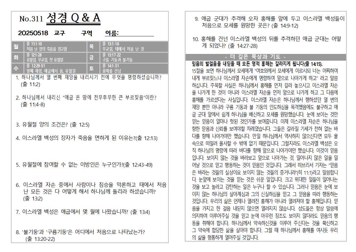 2025년 5월 25일주일 교회소식 및 Q&A