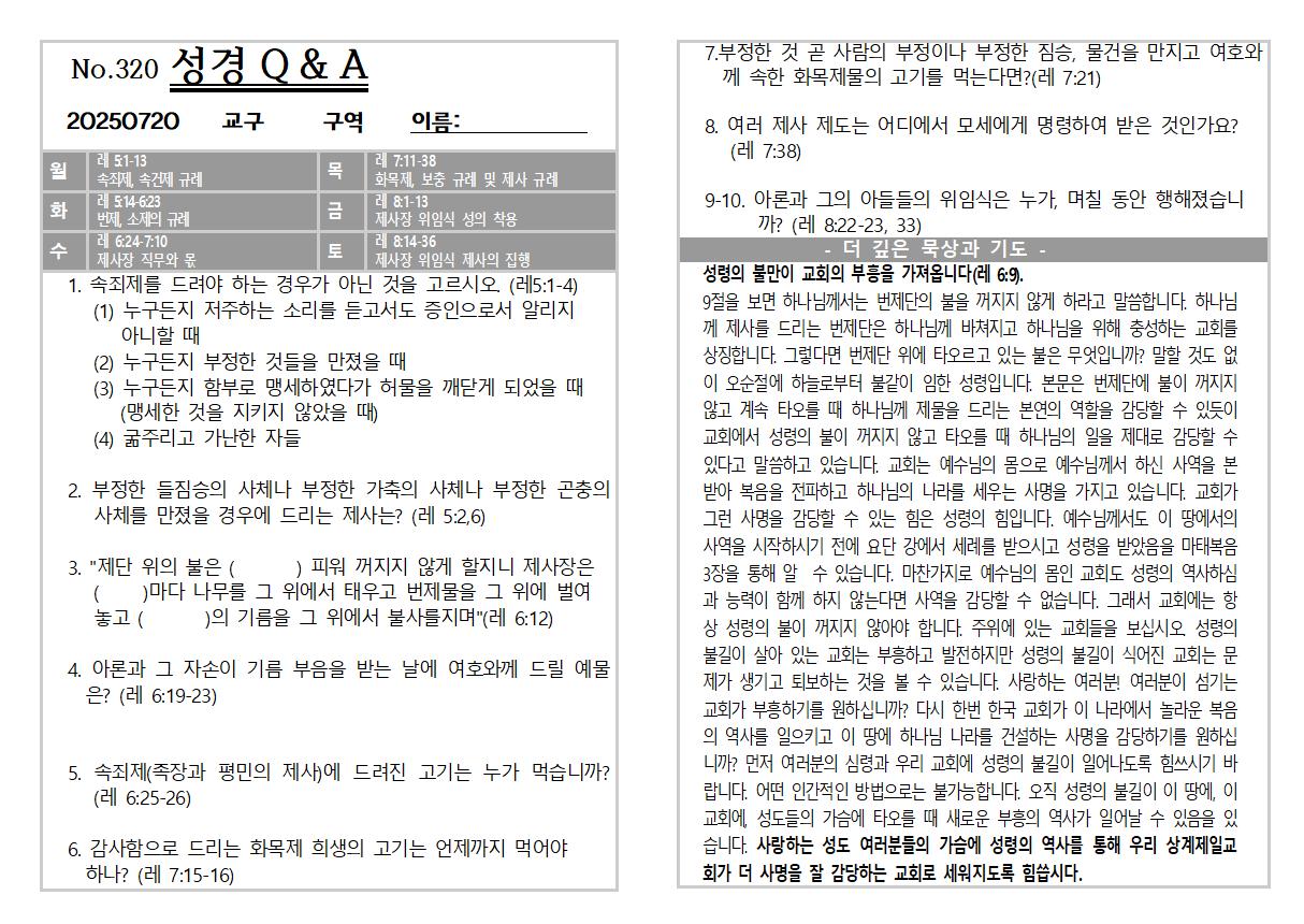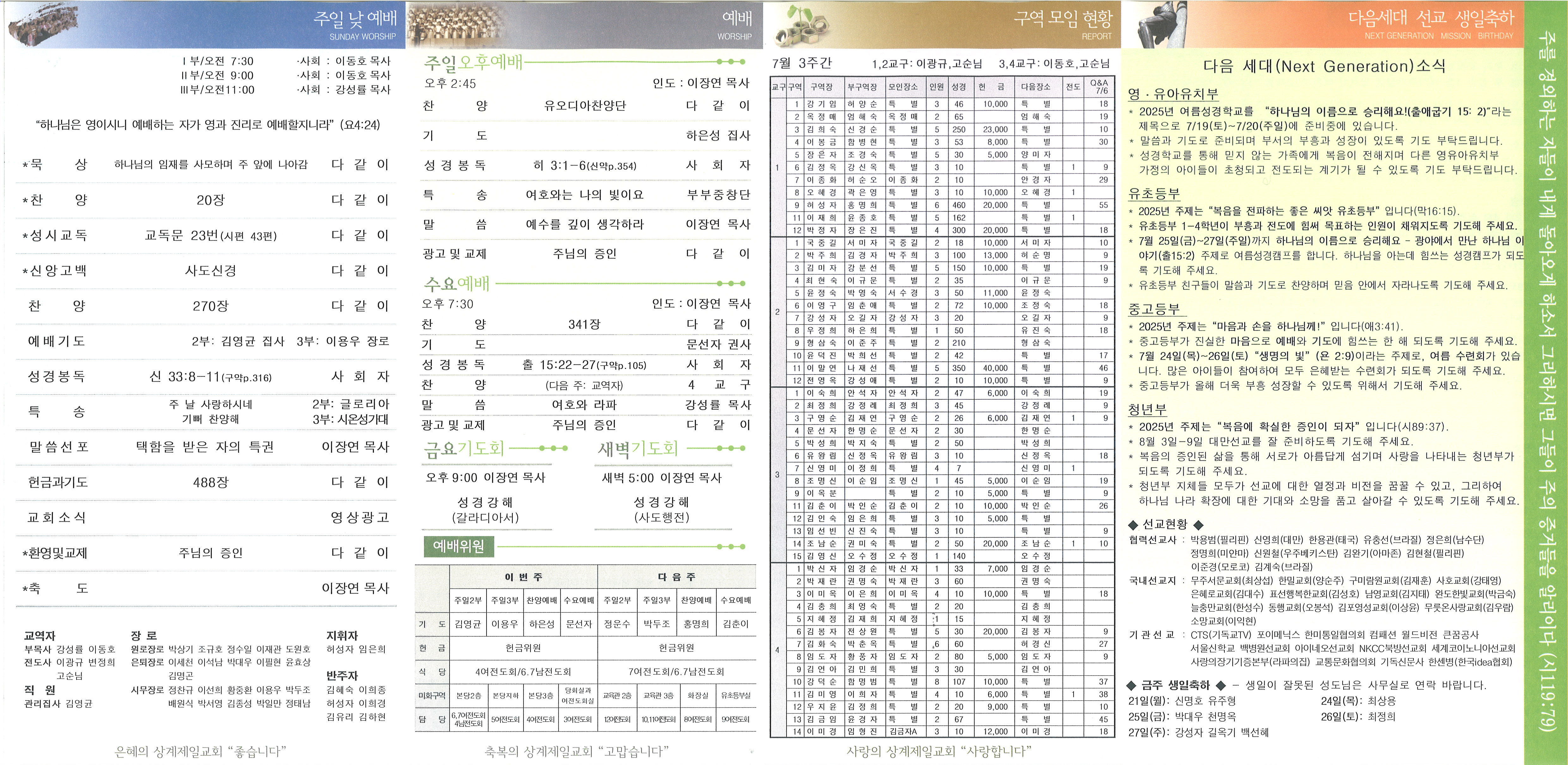 2025년 7월 20일 주일 교회소식 및 Q&A