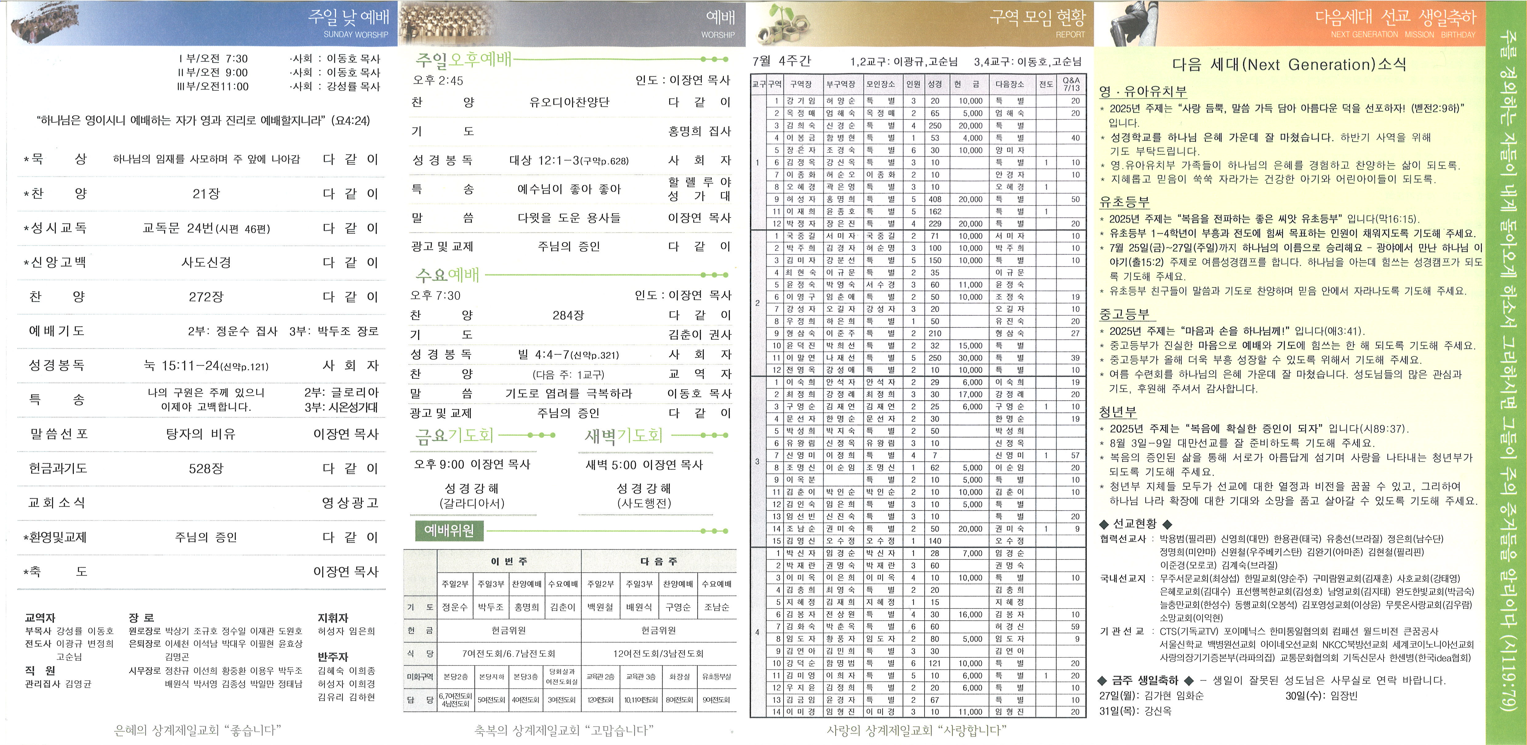 2025년 7월 20일 주일 교회소식 및 Q&A