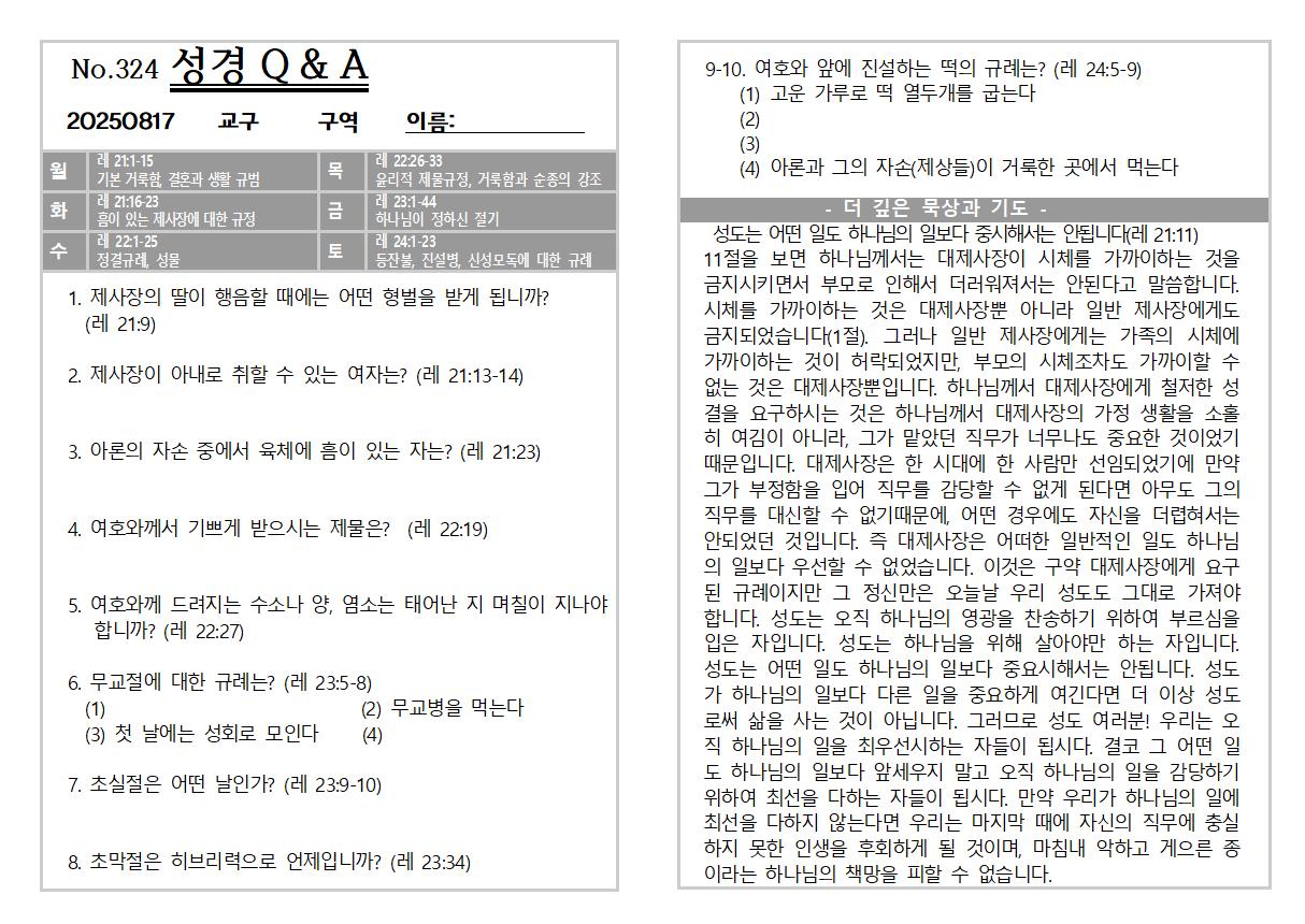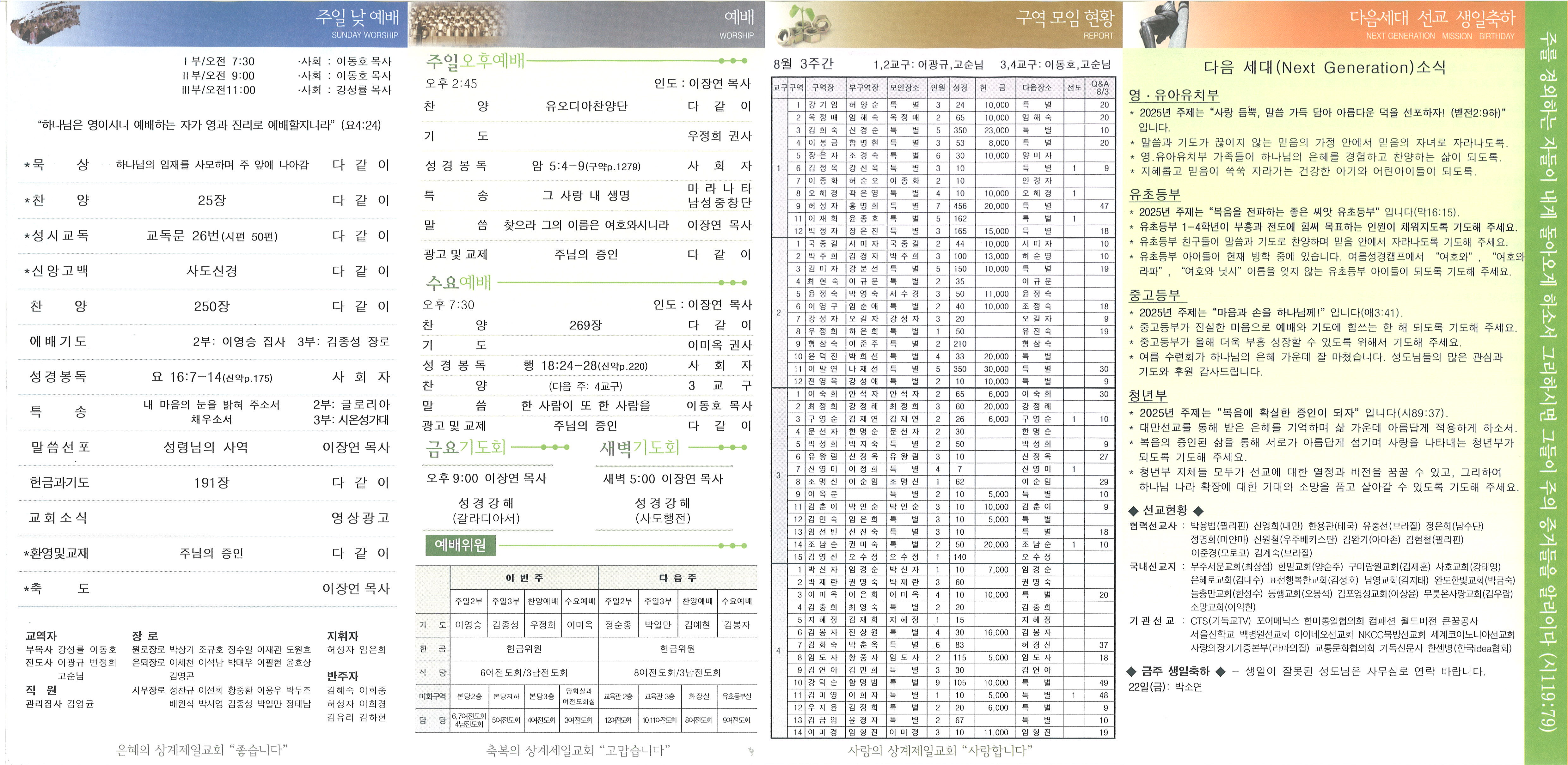 2025년 8월 24일 주일 교회소식 및 Q&A