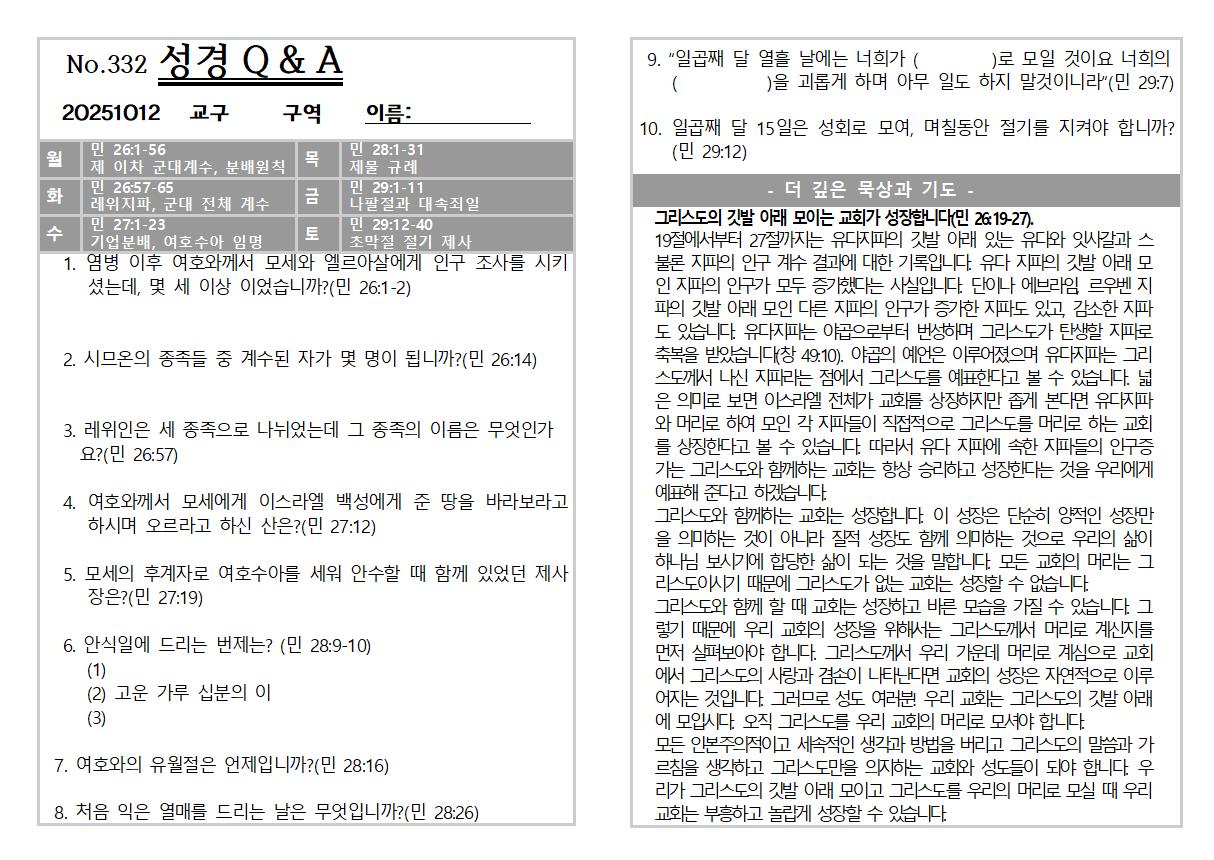 2025년 10월 12일 주일 교회소식 및 Q&A