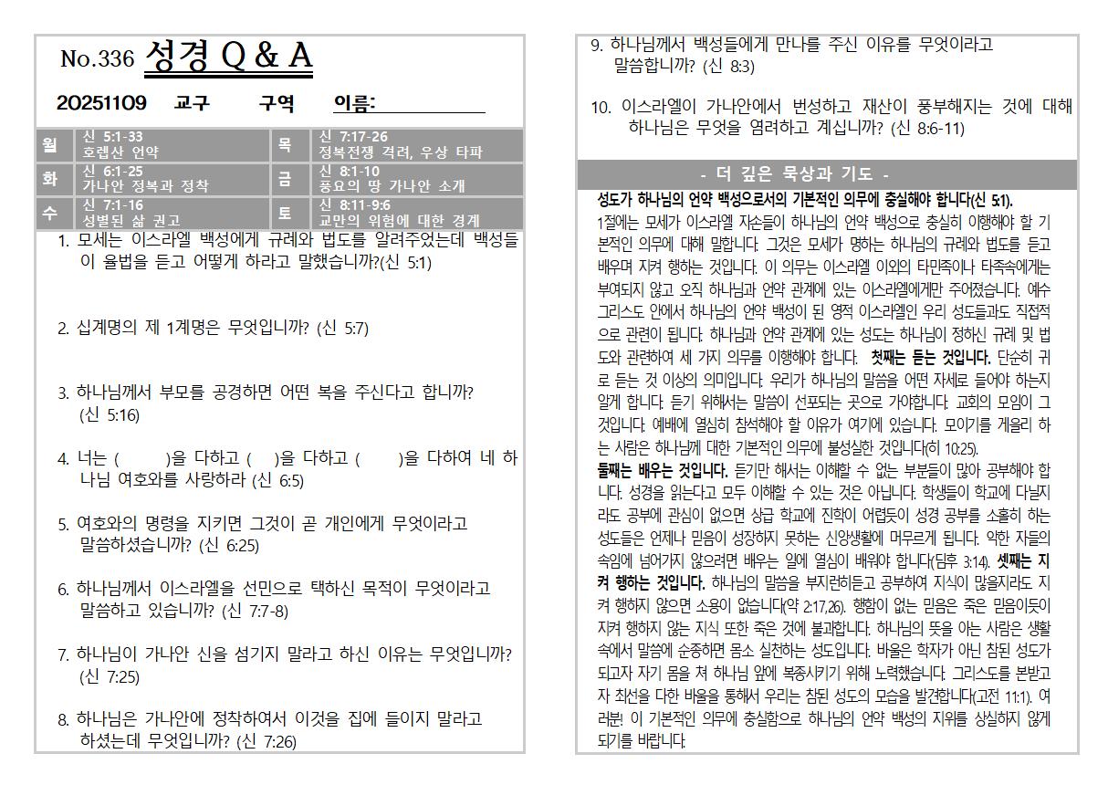 2025년 11월 2일 주일 교회소식 및 Q&A