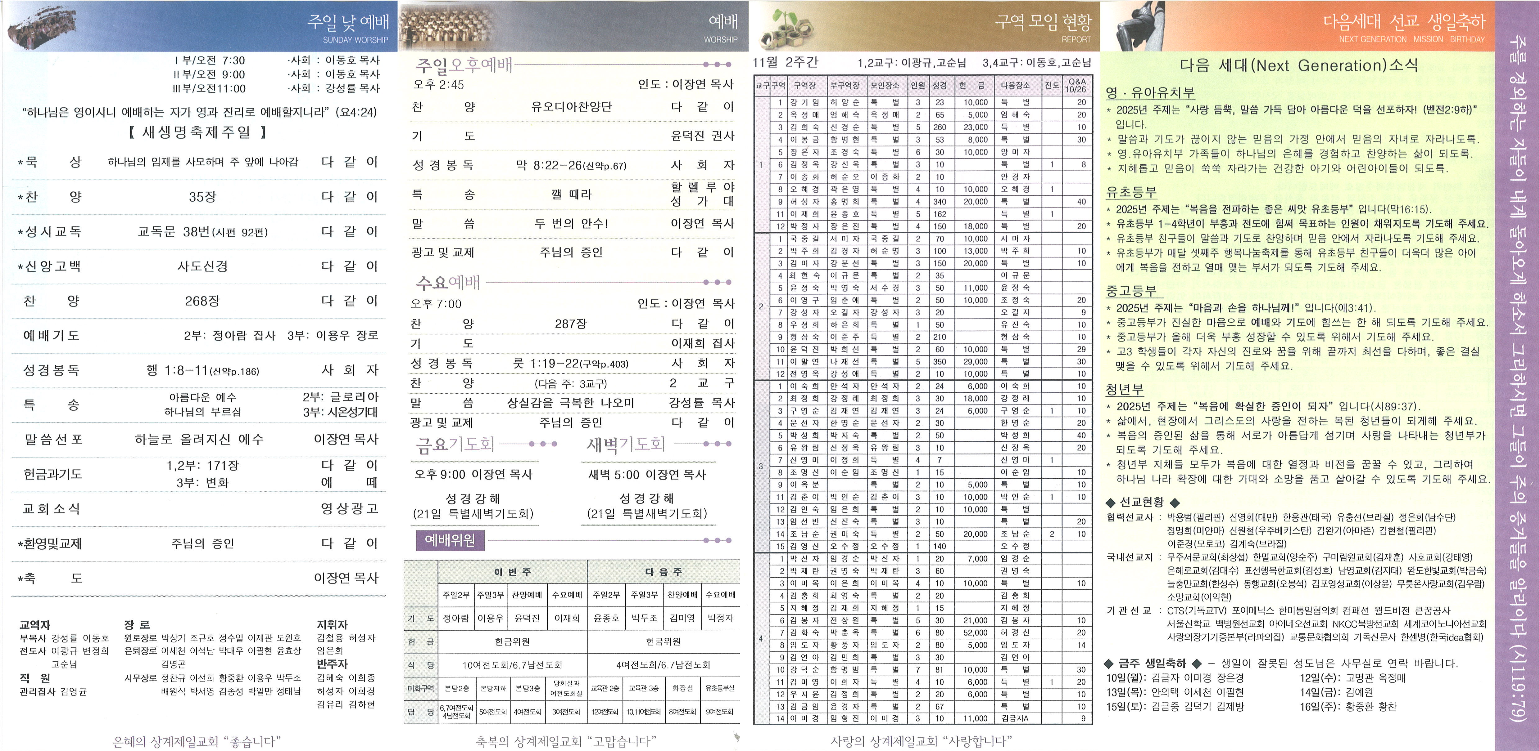 2025년 11월 9일 새생명 축제주일 교회소식 및 Q&A